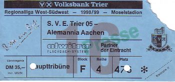 Bereits heute um 15.30 Uhr fuhr unsere Mannschaft Richtung Trier in ihr Quartier, um morgen ausgeruht in das Auftaktspiel bei der Eintracht aus Trier zu gehen. Bis auf René Hahn und Erwin Vanderbroek (schwere Mittelohrentzündung) kann Trainer Fuchs aus dem Vollen schöpfen und wird wohl mit der Mannschaft beginnen, die auch gegen Westwacht beim Anpfiff auf dem Platz stand. Dies wäre natürlich eine recht offensive Aufstellung und zeigt, daß man sich auch dieses Jahr nicht im Moselstadion verstecken will. Im letzten Jahr reichten drei Tore nicht zu einem Punkt, aber genau daran wurde ja hart gearbeitet. Triers Trainer Vollmann hat hingegen einige Probleme mit Verletzungen und kann nicht mit der Wunschformation auflaufen, wobei der Spieler Astrit Ramadani inzwischen sogar fristlos entlassen wurde (s.u.). Trotz allem konnte seine Mannschaft am Mittwoch gegen Bayern München, unter den Augen unseres Trainers Werner Fuchs, das Spiel bei der 0:1 Niederlage über weite Strecken offen gestalten. Im letzten Jahr gab es zwei hochklassige Spiele gegen Trier und daran glauben auch die Aachener Fans, die in Scharen anreisen werden. Eintausend Fans, meldete jedenfalls Radio Aachen, wollen unsere Mannschaft begleiten. Das wäre natürlich eine tolle Zahl. So viele Fans gab es auswärts zuletzt vor einigen Jahren einmal am 1. Spieltag bei RW Essen. Beim VfB Wissen waren es beim RL-Auftakt mal ca. achthundert, die ihre Mannschaft begleiteten. Freuen wir uns also auf die neue Saison.