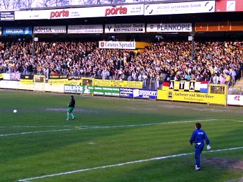 Und Homburg? Die wehren sich tapfer, aber richtig torgefährlich werden die jetzt nicht mehr. In der ein oder anderen Szene merkt man, warum die Mannschaft solange da unten in der Tabelle stand. Die Qualität einzelner Spieler reicht einfach nicht aus, um Alemannia noch mal in Bedrängnis zu bringen. Trotzdem, ein ungutes Gefühl beschleicht einen jedesmal, wenn die Saarländer angreifen oder flanken. Ein paar Mal erwische ich mich dabei, wie ich mitzucke, mitschieße und mich mit in den Schuß werfen will. Hoffentlich ist bald Ende. Jetzt 92. Minute ist es soweit, Schiedsrichter Späker pfeift Andreas Bluhm, der Jubel ist groß. Nicht über das Spiel, aber über die drei Punkte. Das ist jetzt in der Phase der Saison das einzige was zählt. Ich brauche kein schönes Spiel mehr zu sehen, ich will die Mannschaft nur noch gewinnen sehen. Genauso war es heute. Die Mannschaft bekommt zwei Tage frei zur Erholung und wir alle können uns genüßlich am Wochenende zurücklehnen und schauen mal wie die anderen spielen.