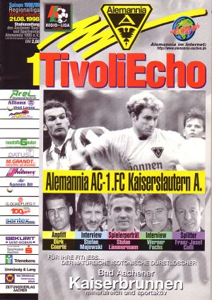 Aufregender als der Saisonauftakt waren in diesen Tagen im August 1998 allerdings die Diskussionen um einen Abriss und Neubau des Tivoli. Besonders engagiert war in dieser Geschichte die IG der Alemannia-Fans und Fanclubs.